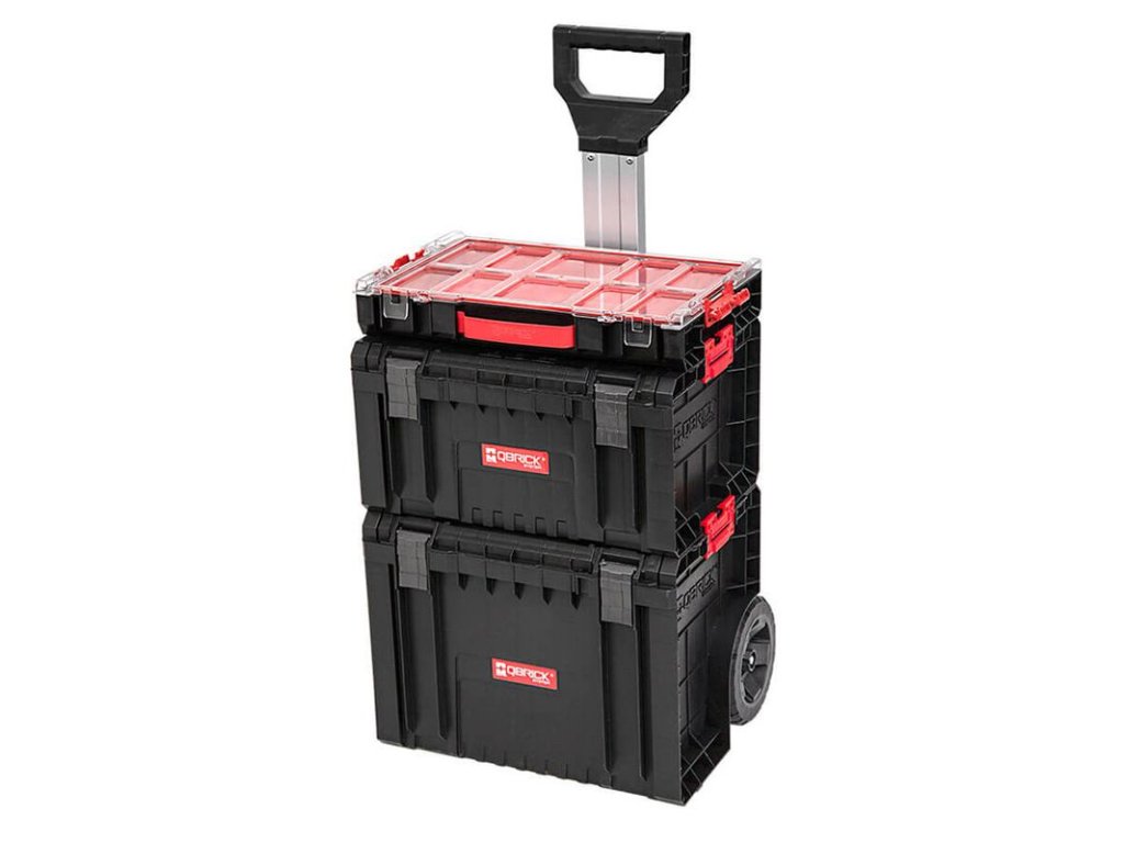 Qbrick System PRO Toolbox je priestranná modulárna skrinka na náradie, ktorá už v štandardnej výbave ponúka množstvo funkcií: flexibilné tesnenie zabudované do veka pre vysokú odolnosť voči prachu a vniknutiu vody, 3 nastaviteľné prepážky, priestranný zásobník a bočné konektory a predné upevňovacie prvky vyrobené zo super pevného polyamidu. Špeciálne sklíčka vo vnútri QS PRO Toolbox pojmú QS TWO Multi Organisers, určené na uloženie drobného dielenského príslušenstva.