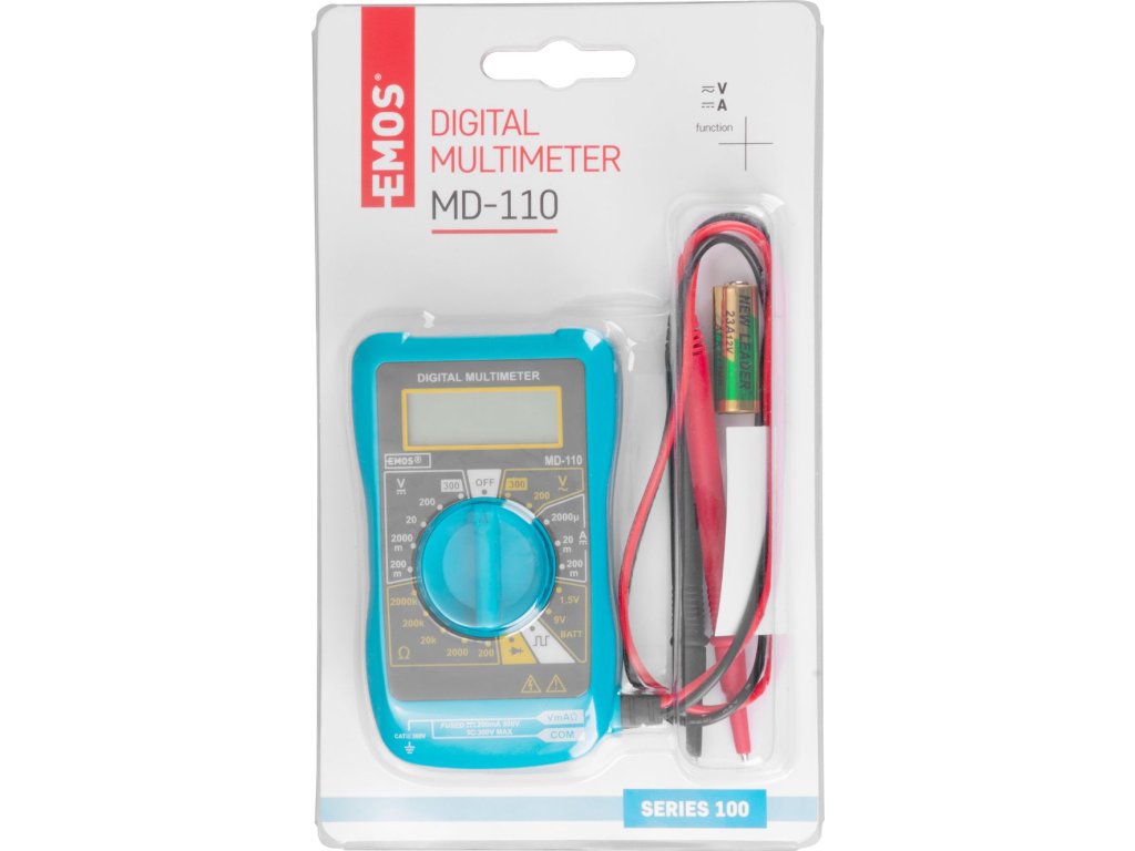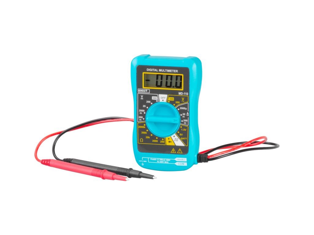 Multimeter EMOS EM320A je nenahraditeľnou súčasťou domácnosti, dielne či laboratória. Dokážete s ním zmerať jednosmerné a striedavé napätie, prúd aj odpor. Na otočnom voliči je možné zvoliť veličinu a rozsah merania. Po pripojení katódy a anódy Vám digitálny displej ihneď zobrazí nameranú hodnotu. Poteší Vás kompaktný vzhľad multimetra, s ktorým ho môžete mať stále k dispozícii. Vybavený je tiež testerom batérií a diód. Napájaný je 12 V batériou, o stave nabitia Vás upozorní kontrolka.