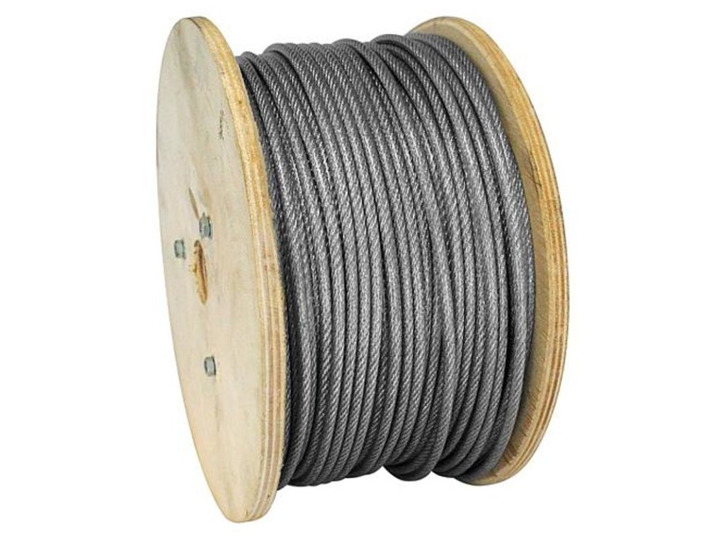 Lano MGM Zn-PVC 4/5.5 mm, oceľové, bal. 100m. Platí, že čím menší počet drôtov lano bude mať, tým bude tvrdšie a menej ohybné, avšak bude mať lepšie parametre v rámci toho nosnosti a zaťaženia.