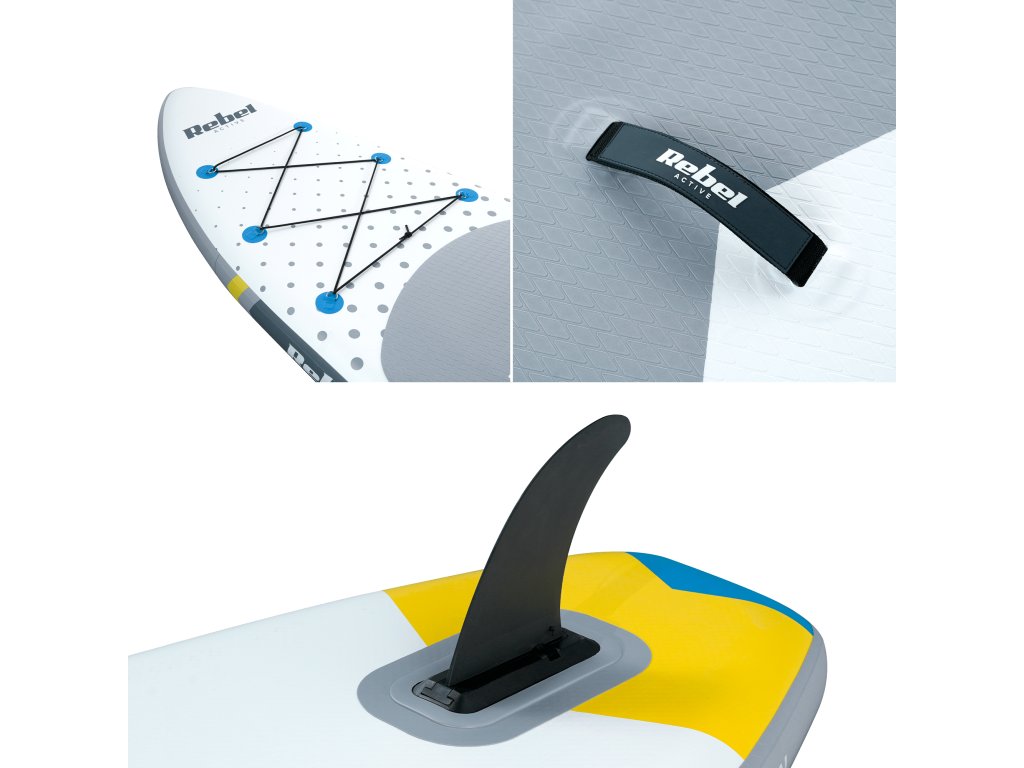 Paddleboard Rebel Active sa vyznačuje pevnou a stabilnou konštrukciou vyrobenou technológiou drop-stitch. To vám umožní bezpečne sa pohybovať po vode bez ohľadu na vašu úroveň zručností, či už v stoji alebo v sede. Protišmyková doska pokrytá 3 mm hrubou penou EVA poskytuje vynikajúcu priľnavosť, vďaka čomu bude aj ten najintenzívnejší paddleboarding hračkou.