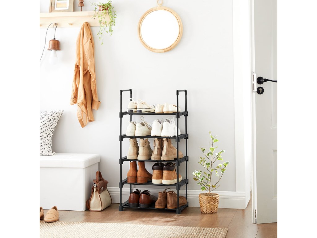 Skrinka má 5 políc na topánky, ktoré v závislosti od veľkosti vašich topánok pojmú až 10 párov.