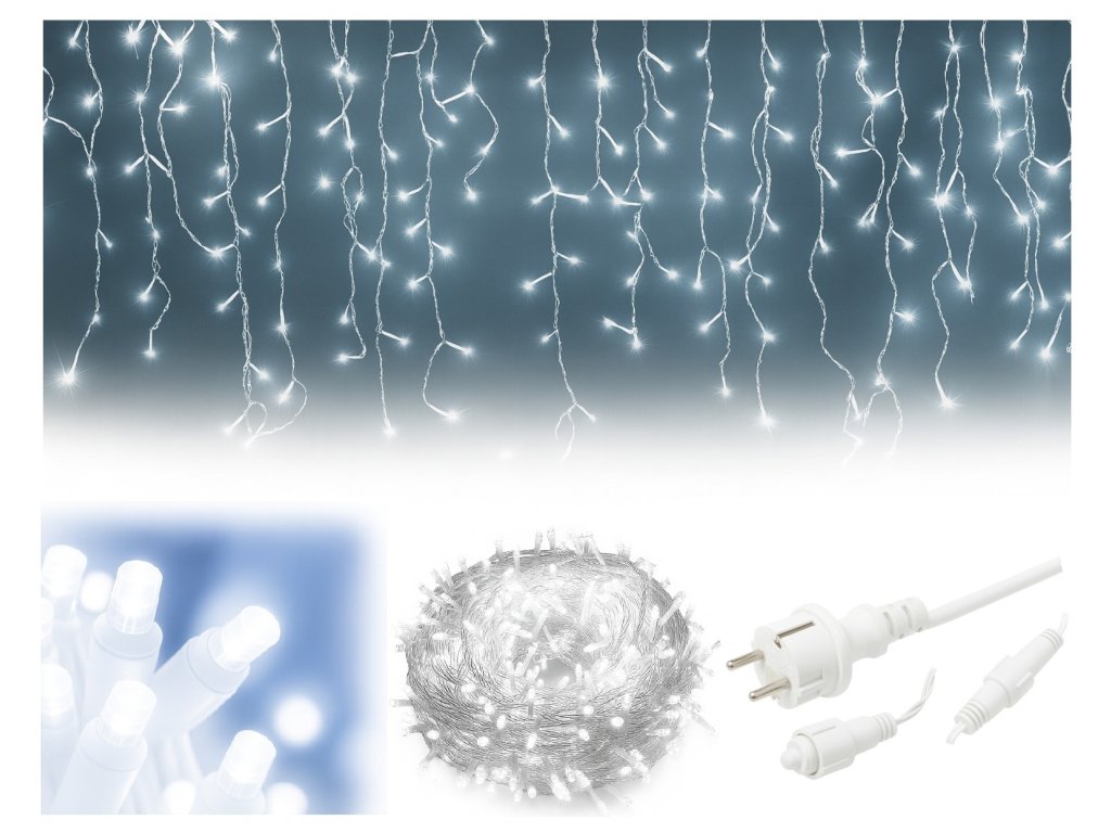 Vianočné vonkajšie svietielka, 300LED, 14,5m, cencúle, FLASH, STUDENÁ biela