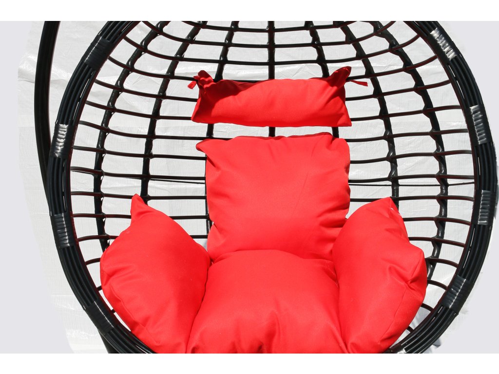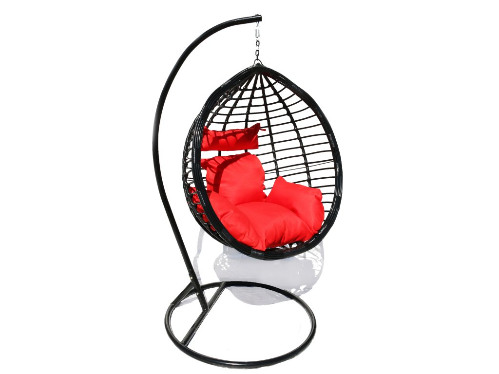 Závesné hojdacie kreslo DELUXE čierne - červený vankúš