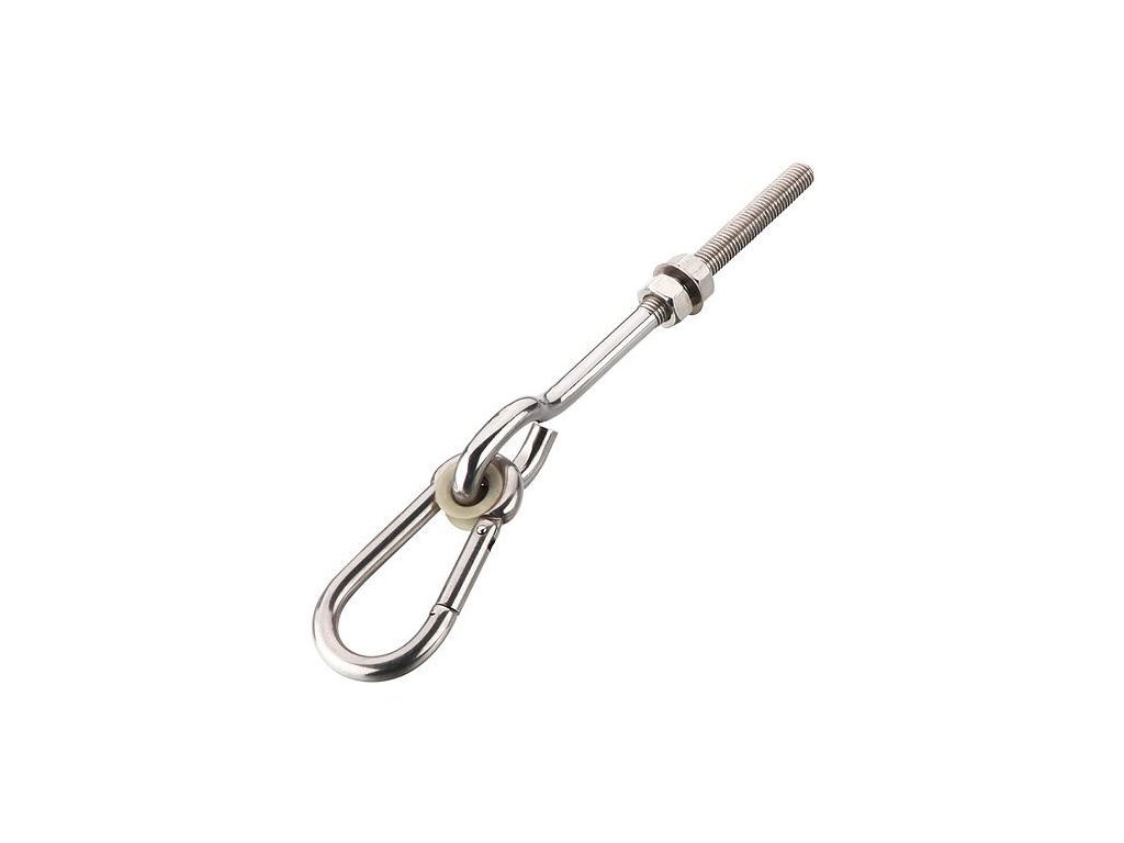 Hák je pomôckou pre spojenie závesných častí. Poskytuje bezpečné pripevnenie. Hák je možné navŕtať do kovového alebo tiež dreveného materiálu. Nastavíte si potrebnú dĺžku a podľa toho dokrútite vrchnú maticu. Potom už len zavesíte potrebný produkt do oka háka. Priemer časti tyče háku, ktorá sa zaistí do konštrukcie, je 10 mm a jej dĺžka je 160 mm.